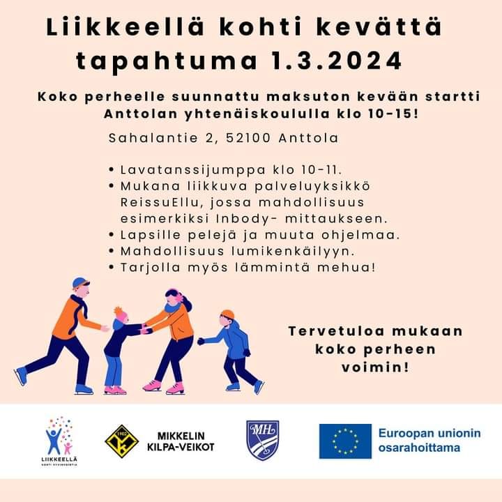 Liikkeellä kohti kevättä tapahtuma Anttolan yhtenäiskoululla